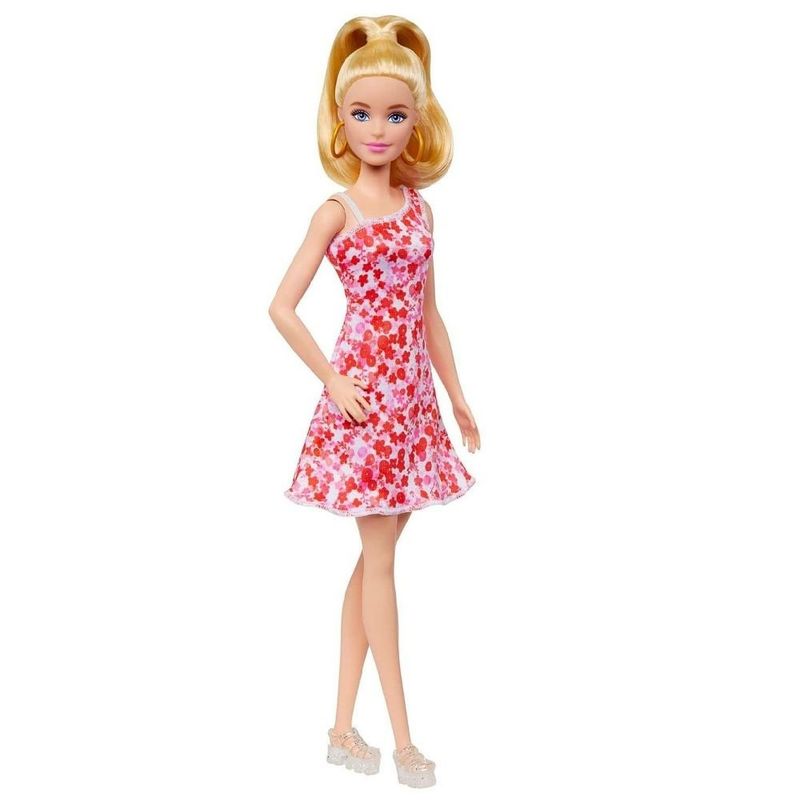 Esta boneca Barbie estiliza seu cabelo loiro em um divertido rabo de cavalo alto! Com brincos de argola dourados e sandálias plataforma gelatinosas, seu look traz muitos detalhes que fazem sua personalidade se destacar.