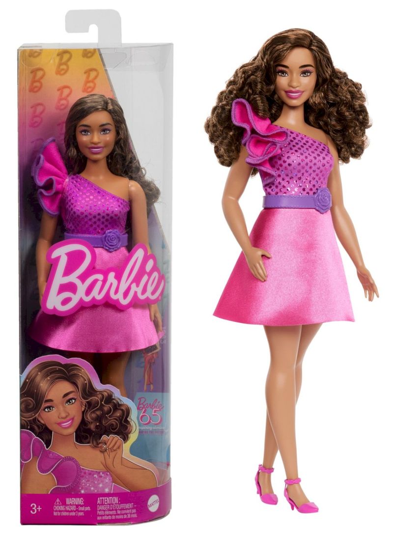 Boneca Barbie Fashionista #225 Fabricante: Mattel. Coleção: Fashionistas. Comemorando 65 anos de moda icônica e estilo próprio, as bonecas Barbie Fashionistas celebram a diversidade e oferecem infinitas possibilidades para contar histórias e explorar a moda. Com uma gama inclusiva de looks, as crianças podem ver como é divertido expressar personalidade através do estilo! E apresentando as tendências atuais, as bonecas Barbie são um presente ideal para crianças apaixonadas por moda em todos os lugares. Cada uma vendida separadamente, sujeita à disponibilidade. As bonecas não ficam em pé sozinhas. As cores e decorações podem variar. - A boneca Barbie comemora 65 anos de estilo exclusivo com versões modernas de looks icônicos e muitos toques exclusivos! - Inspirada em seu visual Dream Date de 1993, a boneca Barbie Fashionistas usa um vestido rosa com babados de um ombro só e corpete brilhante! - Saltos rosa combinando e um cinto roxo florido são toques elegantes que complementam o look! - A boneca Barbie tem um corpo curvilíneo e usa seu cabelo castanho com cachos bem definidos para completar o visual! - Com infinitas possibilidades de estilo e narrativa, as bonecas Barbie são um ótimo presente para fãs, colecionadores e crianças de 3 anos ou mais! Tamanho: 30 cm de comprimento.