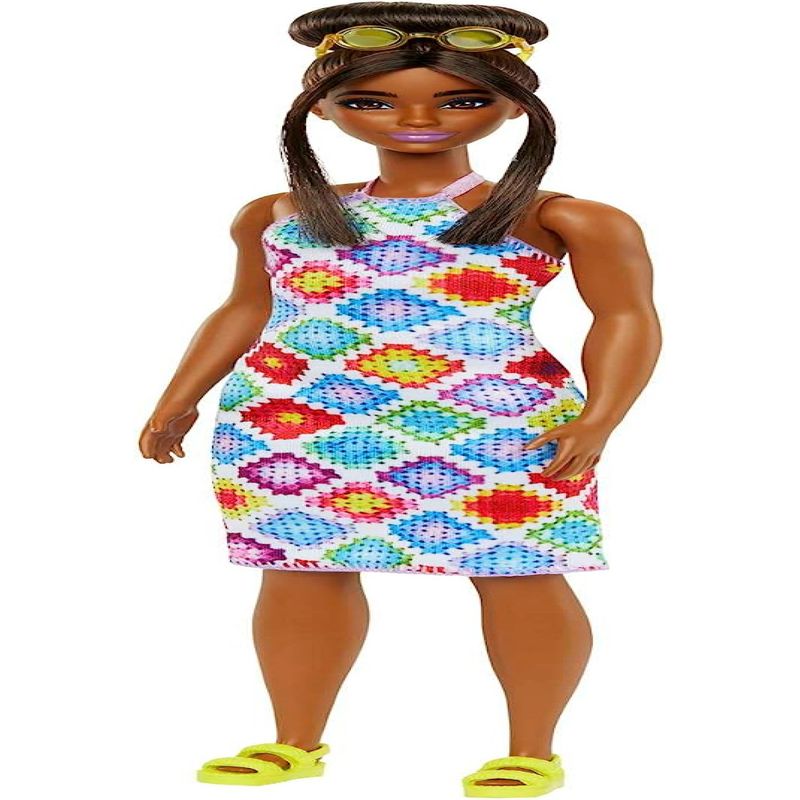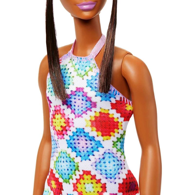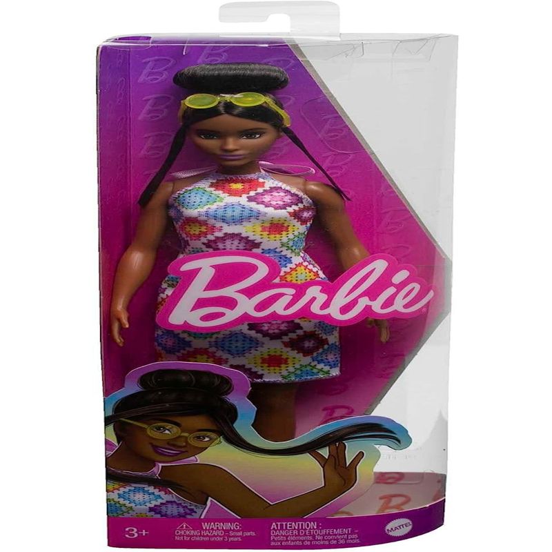 Boneca Barbie Fashionistas Negra Vestido Branco com Losangos da Mattel É Ideal Para Meninas Acima de 3 Anos.