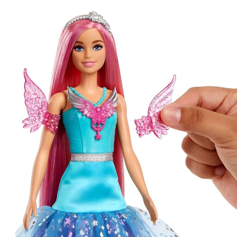 Modelada com base em seu visual cintilante em Barbie Um Toque de Mágica, a boneca Barbie "Malibu" Roberts vem com um vestido inspirado na fantasia, animais de estimação e acessórios.