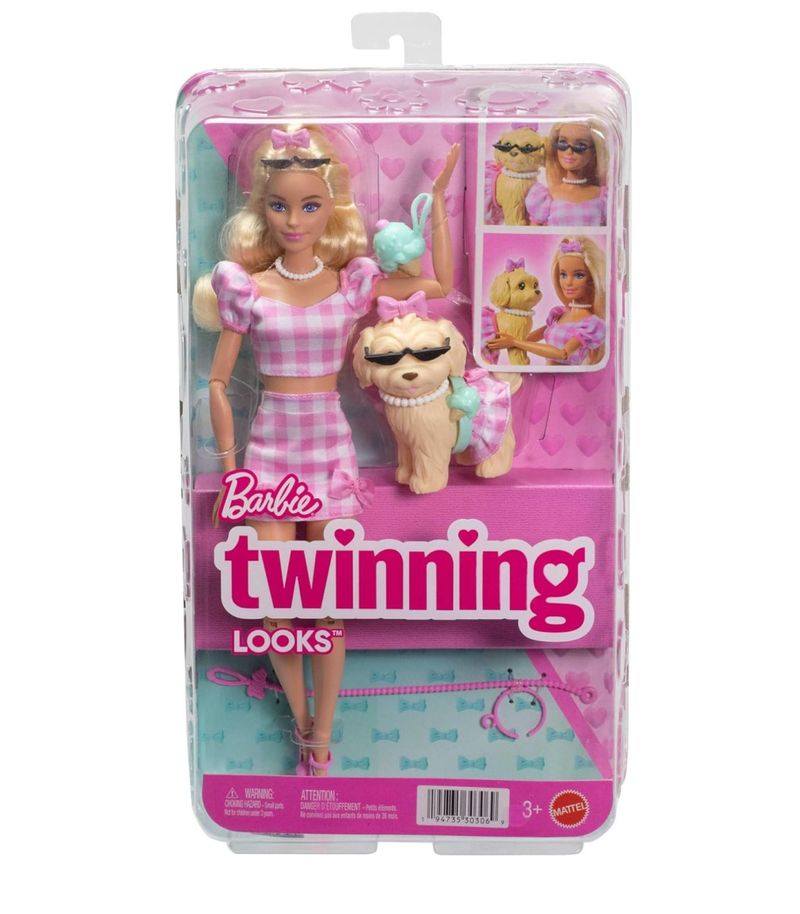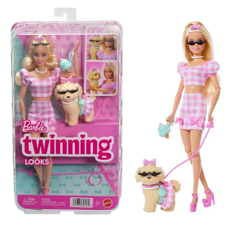 Boneca Barbie Malibu Twinning Looks c/ Cachorrinho Fabricante: Mattel. Coleção: Twinning Looks. Se divirta em dobro na hora de se arrumar com os kits Barbie Twinning Looks! Cada boneca Barbie vem com um cachorrinho adorável usando uma roupa combinando. Acessórios combinando completam o visual dessa dupla estilosa, dos pés à cabeça! Laços, colares e muito mais dão um toque extra de personalidade. Seja para um passeio no parque ou uma voltinha no shopping, Barbie e seu pet estão prontos para tudo! Cada kit é vendido separadamente, sujeito à disponibilidade. A boneca não fica em pé sozinha. Cores e decorações podem variar.