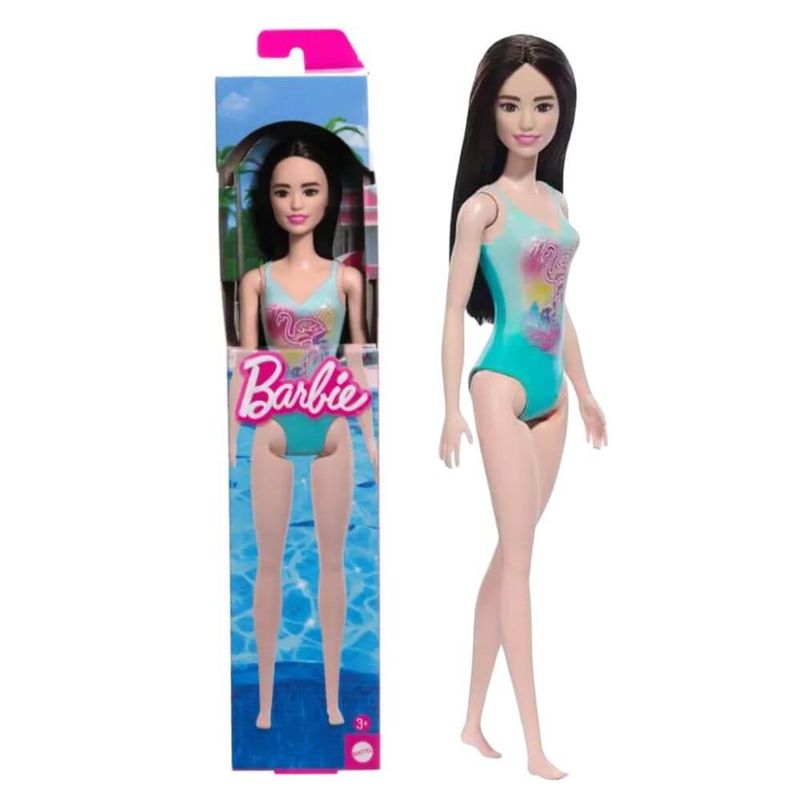 Boneca Barbie Praia Cabelo Preto - Maiô Azul da Mattel É Ideal Para Meninas Acima de 3 Anos.