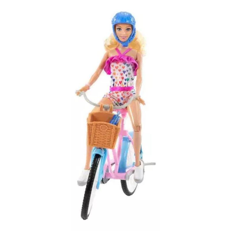Deixe a diversão rolar com a Barbie Passeio de Bicicleta da Mattel, com uma bicicleta que anda de verdade! Decorada com lindos tons de rosa e azul, detalhes prateados e um cesto, a bicicleta é perfeita para inspirar muitas histórias. Os pedais e as rodas que giram de verdade deixam o passeio mais divertido: basta prender a Barbie no assento, colocar as mãos no guidão e empurrar! A Barbie tem quadris, joelhos e braços articulados para pedalar e brincar. Com um macacão super fofo com babados e estampa de coração e arco-íris, ela está pronta para qualquer aventura. Os acessórios incluem capacete e uma garrafa de água que cabe no cesto da bicicleta para levar a diversão para qualquer lugar. Crianças partir de 3 podem levar o conjunto em um passeio e pedalar para muitas aventuras! A boneca não fica em pé ou anda de bicicleta sozinha. As cores e as decorações podem variar.