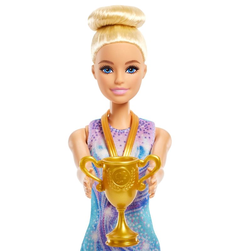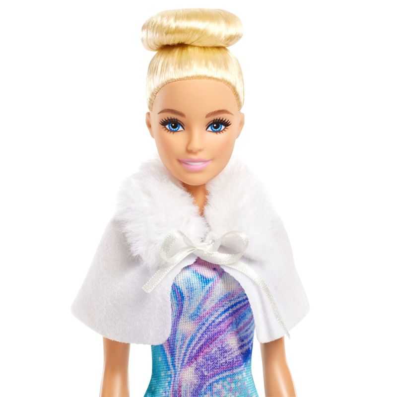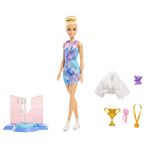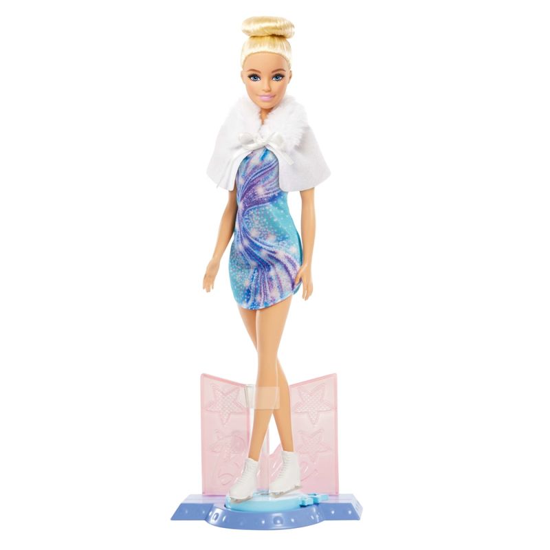 Boneca Barbie Profissões Esportistas c/ Acessórios Fabricante: Mattel. Coleção: You Can Be Anything - Career Doll Inclui 1 Boneca e acessórios. A boneca Barbie está pronta para arrasar no gelo e brilhar na sua apresentação de patinação! Ela veste um traje azul e roxo brilhante com patins brancos, além de um casaquinho branco felpudo para se agasalhar depois da apresentação. As crianças podem recriar seus movimentos de patinação com uma plataforma giratória para a boneca! Além disso, acessórios como troféu, medalha, buquê e ursinho de pelúcia aumentam as possibilidades de brincadeira. A boneca não fica em pé sozinha. As cores e decorações podem variar. - Com este divertido conjunto que inclui uma plataforma giratória e 5 acessórios temáticos, as crianças podem criar uma apresentação de patinação no gelo digna de campeãs para a boneca Barbie! - Gire sobre o gelo com a Barbie! Ela vem com uma plataforma giratória: basta encaixar a perna dela no suporte e girar a alça em forma de estrela para fazê-la girar! - A boneca Barbie veste um vestido azul e roxo brilhante. Com o cabelo preso em um coque e patins de gelo brancos nos pés, ela está pronta para a competição! - Um casaquinho branco felpudo é perfeito para mantê-la aquecida após a apresentação. Ela também vem com acessórios como um troféu dourado, uma medalha, um buquê de flores e um ursinho de pelúcia. - Crianças a partir de 3 anos podem colecionar outras bonecas Barbie para inspirar ainda mais histórias imaginativas na hora de brincar! Cada uma vendida separadamente, sujeita à disponibilidade.