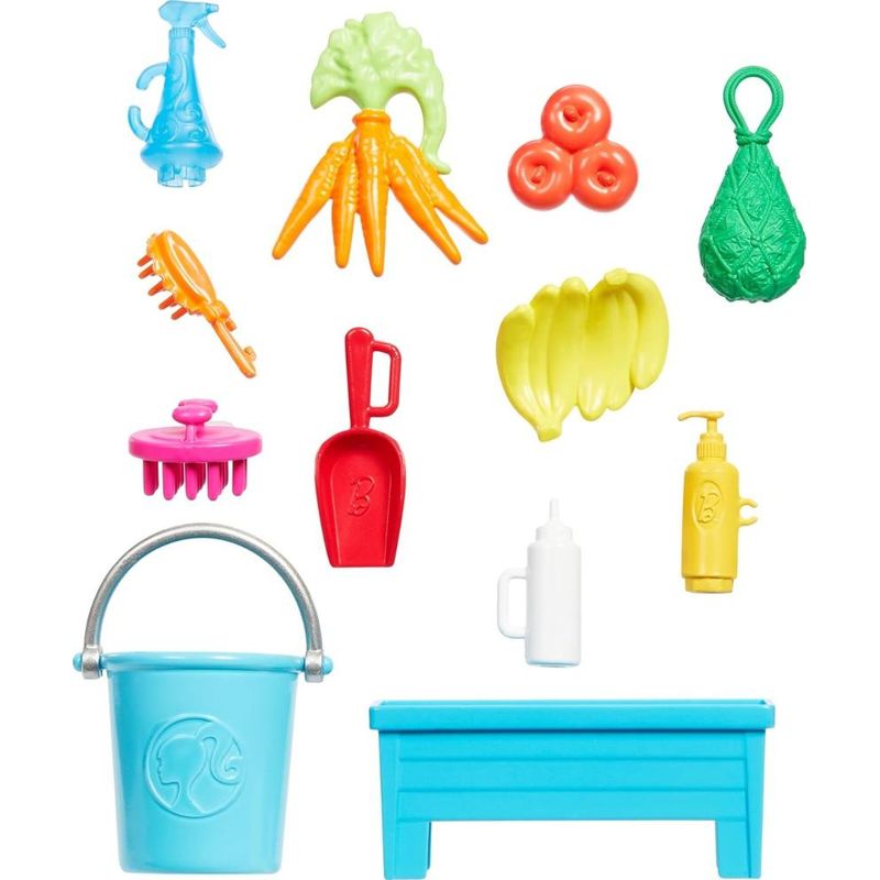 -Inspirado na série Barbie Detetive: A Grande Corrida de Cavalos, este conjunto de mais de 10 peças permite que as crianças ajudem a boneca Renee a cuidar de seu adorável cavalo marrom de brinquedo! -O conjunto tem 4 áreas de jogo, incluindo um estábulo, uma estação de alimentação, uma pia e uma cerca extensível. -Os acessórios incluem um recipiente de alimentação e comida, um balde, uma concha, uma escova e muito mais para brincar de contar histórias! -A boneca fashion Renee usa um lindo top rosa e uma saia jeans, com acessórios que incluem um relógio para garantir que ela não perca a hora de alimentar! -As crianças (a partir de 3 anos de idade) vão adorar poder interpretar o papel de cuidar desse lindo pônei, especialmente os jovens amantes de cavalos. Características: Marca - Mattel Cód. HXJ40 Recomendado para maiores de 3 anos Conteúdo: Boneca Barbie, 1 Pônei + Acessórios