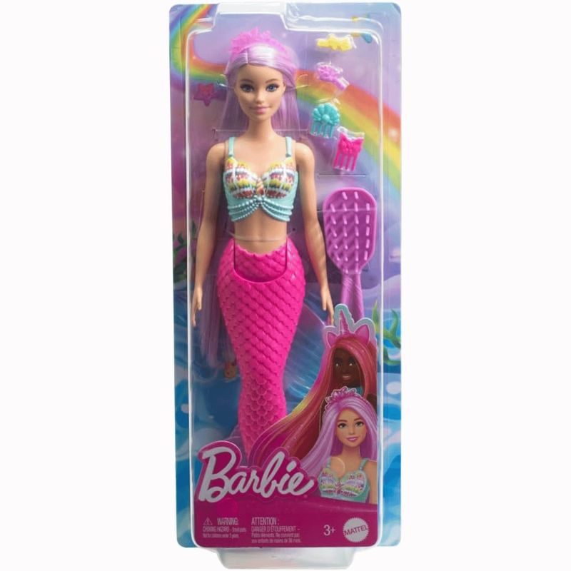Inspirada em Barbie: Um Toque de Mágica, essa boneca Barbie sereia desperta a diversão em contar histórias encantadas e criar penteados com seu cabelo de fantasia extralongo e seus acessórios de estilização!