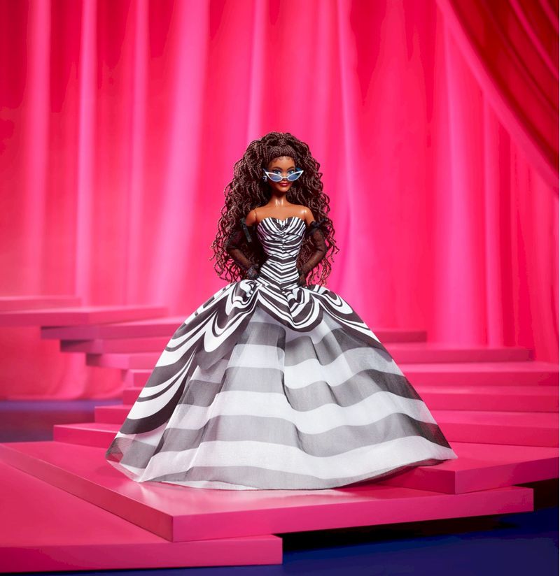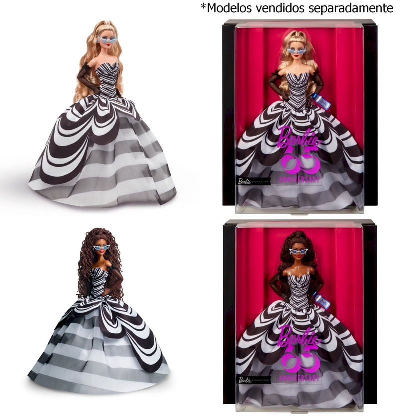 - A Barbie comemora seu 65º aniversário com uma linda boneca colecionável que reimagina elementos clássicos da boneca Barbie original através de lentes de elegância moderna.
