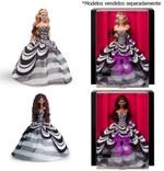 Esta glamorosa boneca Barbie marca o 65º aniversário da Barbie de uma forma deslumbrante. Uma celebração do ícone, seu visual comemorativo está imbuído de lindos detalhes da cabeça aos pés que remetem à boneca Barbie original. Uma visão em preto e branco com toques de cor safira, ela é obrigatória para colecionadores, amantes da Barbie e aficionados da moda em todo o mundo. Inclui suporte para bonecas e Certificado de Autenticidade. A boneca Barbie® não pode ficar sozinha. Cores e decorações podem variar.