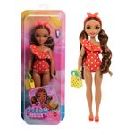 Boneca Barbie Teresa da Praia Fabricante: Mattel. Coleção: Barbie Dream Besties Tamanho: 29 cm de altura. As bonecas Barbie Dream Besties incentivam as crianças a compartilhar suas personalidades únicas e suas modas com o mundo! Veja a Barbie Teresa vestida com seu traje de banho estampado. As bonecas fashion incluem acessórios com tema de praia e cabelos compridos para que você se divirta com o estilo. As bonecas Barbie Dream Besties inspiram crianças a partir de 4 anos de idade a viverem seus sonhos.