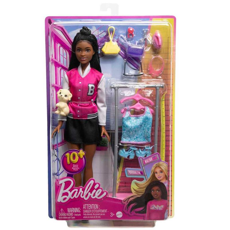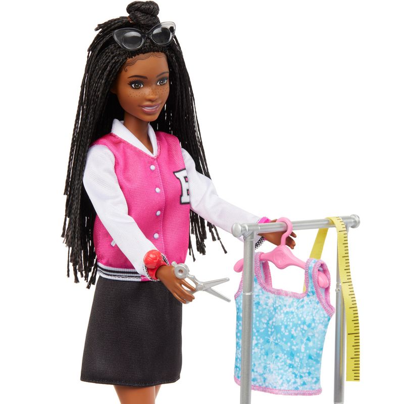 A boneca Barbie Estilista permite que as crianças tragam a diversão do set para casa! Inspirado nas séries do YouTube "Barbie" e "Barbie On Set", este conjunto Barbie tem como temas guarda-roupa e figurinos e inclui a boneca Barbie "Brooklyn", um cachorrinho, arara de roupas e mais de 10 peças adicionais para envolver a imaginação. As crianças criativas podem criar novos visuais com a Barbie "Brooklyn" e deixar as suas estrelas brilharem! A boneca não fica em pé sozinha. As cores e as decorações podem variar.