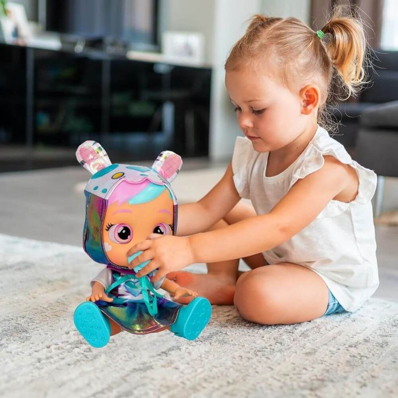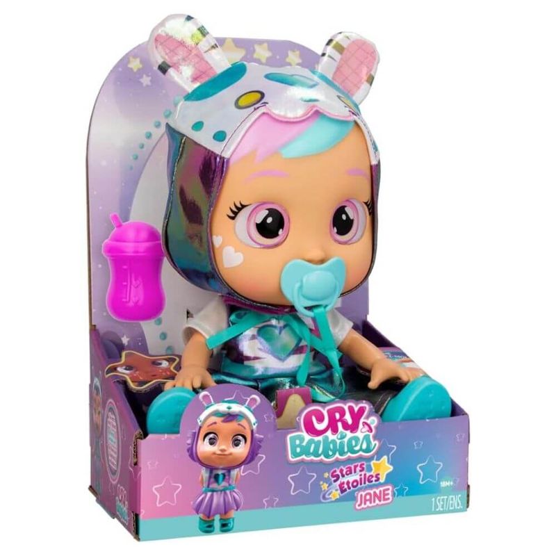 "Prepare-se para se encantar com as novas Cry Babies, que vieram diretamente do espaço e estão mais adoráveis do que nunca! Apresentamos a Jena, uma fofura intergaláctica que vai iluminar suas brincadeiras com seus olhos brilhantes e cheios de estrelas.Cuide da Jena como se fosse um bebê de verdade. Ofereça a ela uma chupeta ou uma mamadeira para que ela não chore. Quando você tira a chupeta dela, a mágica acontece: Chora lágrimas de verdade e seus olhos se enchem de estrelas, brilhando intensamente como o céu noturno!Principais Características:Olhos Estelares: Maravilhe-se com os olhos, que brilham como estrelas ao chorar.Choro Realista: Emite sons de choro, proporcionando uma experiência ainda mais envolvente.Roupa Espacial Deslumbrante: Está pronta para aventuras cósmicas com sua roupa rosa, brilhante e iridescente.