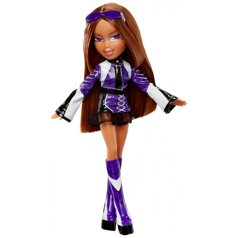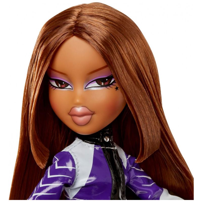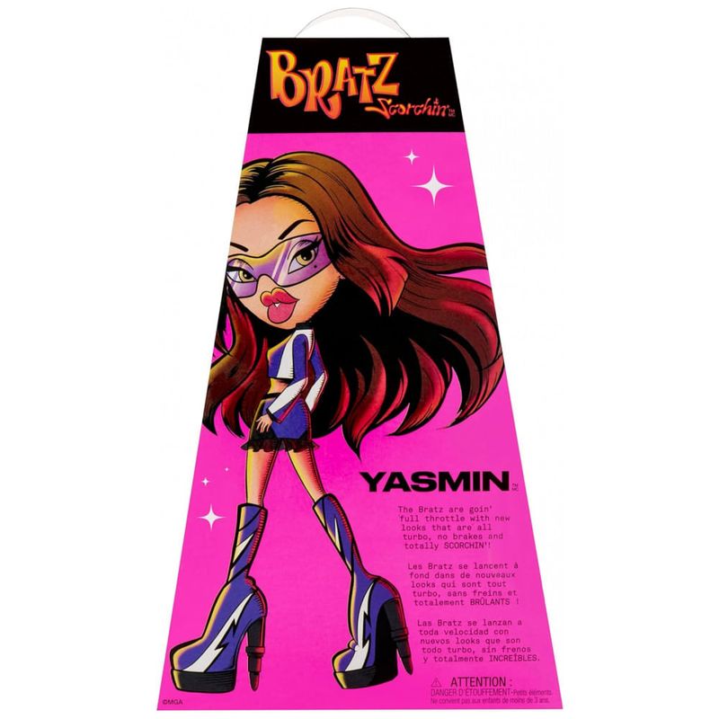 Prepare-se para a moda na pista rápida! As Bratz estão de volta com estilos prontos para o dia da corrida e totalmente ARRASADORES! As garotas com uma paixão pela moda estão desfilando nesses looks inspirados em motos. Yasmin está vestindo uma jaqueta roxa de corrida com uma saia de couro combinando e franzida. Seus acessórios incluem um elegante par de óculos de sol e botas de plataforma com salto em forma de batom. O visual de Yasmin é completado com uma maquiagem suave e um penteado longo e reto. MODA ARRASADORA As garotas com paixão pela moda estão oferecendo um estilo de alta octanagem em looks inspirados em motos. EMBALAGEM PREMIUM Apresenta embalagem decorada com arte ousada e de alta moda para exibir sua boneca. ACESSORIZE Termine o visual com óculos de sol combinando e botas gráficas de plataforma com saltos em forma de batom. INCLUI 1 Boneca Bratz Scorchin, 1 jaqueta, 1 saia, 1 par de sapatos, 1 par de óculos de sol.