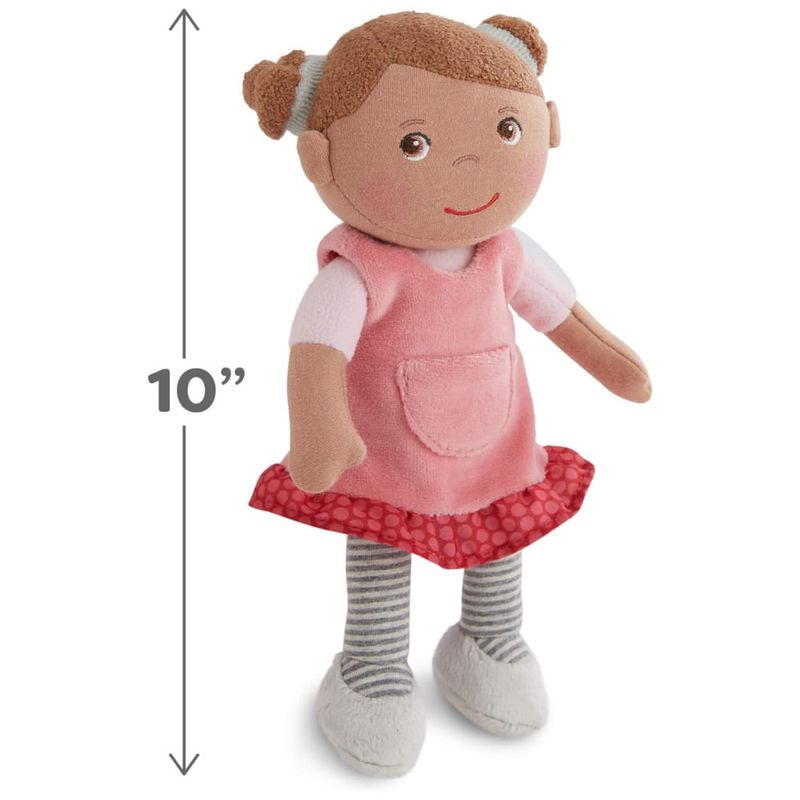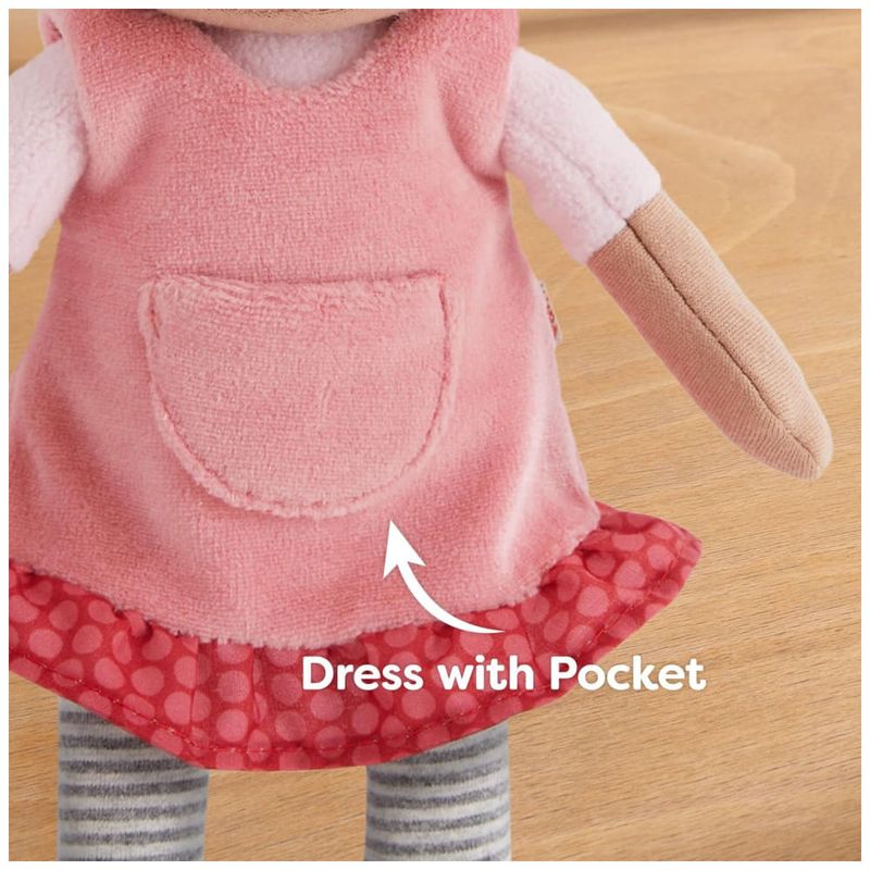 Desfrute do conforto aconchegante da Boneca HABA Snug Up Camilla, com um corpo super macio e peludo perfeito para abraços intermináveis, tornando-a uma boneca ideal como primeira amiga para bebês e crianças pequenas. Com seus adoráveis rabos de cavalo castanhos, vestido rosa com bolso frontal e babado vermelho, e meias listradas, esta boneca inspira brincadeiras imaginativas e contação de histórias. Além de ser uma companheira reconfortante, essa bonequinha doce apoia o desenvolvimento de habilidades empáticas e sociais, ajudando as crianças a aprimorar suas habilidades emocionais e linguísticas através do brincar. Feita com materiais duráveis laváveis à máquina, essa boneca de pano é fácil de cuidar, garantindo que esteja sempre pronta para muitas sessões de abraços ou aventuras. Projetada para crescer com a criança, a Boneca HABA Snug Up Camilla de 25cm é um companheiro reconfortante desde a infância até os primeiros anos, ideal como presente para recém-nascidos ou crianças de 3 anos.