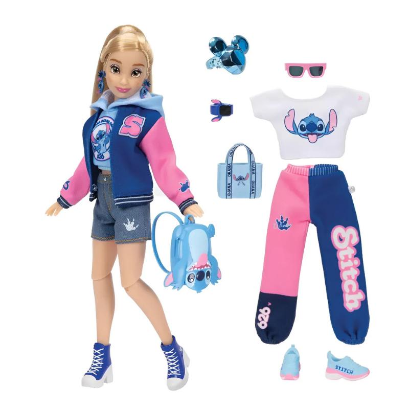 Com roupas em tons vibrantes, a boneca Stitch rosa e azul é puro estilo tropical para brilhar nas passarelas da imaginação.