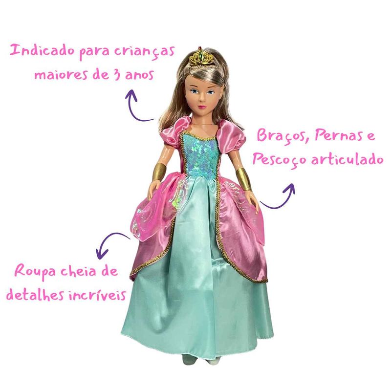 A Boneca Articulada Isabelly mede aproximadamente 80cm, tem detalhes delicados como sapatinhos e tiara removíveis. Essa boneca incrível tem o tamanho perfeito para acompanhar a criançada em suas brincadeiras e aventuras.