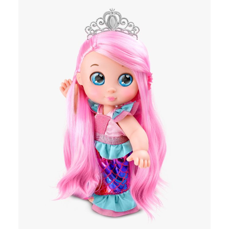 Com seu lindo cabelão rosa, essa sereia encanta pela beleza e riqueza de detalhes, com olhos brilhantes e uma calda encantadora, ela companha uma tiara/coroa de princesa e uma escova de cabelo, para tornar a imaginação e diversão muito mais emocionantes!