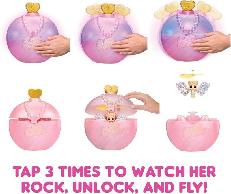 Veja a LOL Surprise Magic Flyers: Ajude Gold Wings alçar voo com suas lindas asas lilás! Esta encantadora boneca voadora, que pode ser controlada manualmente, traz a maravilha do voo para a ponta dos seus dedos. Tecnologia de voo guiado manualmente: Basta guiar a Gold Wings com a mão e vê-la planar graciosamente pelo ar. Lindas Asas: Um design de asas deslumbrante que brilha enquanto ela voa. Fácil de controlar: Perfeito para crianças a partir de 5 anos, sem necessidade de controles complicados. Recarregável: Pronto para voar repetidamente e proporcionar momentos mágicos sem fim. Estilo autêntico LOL Surprise: Apresenta o visual característico que as crianças adoram. Características: Contém: 1 Boneca que voa idade: 6+ anos Material: Plástico e Componentes Eletrônicos Modelo: Gold Wings Marca: MGA Utiliza: 3 Baterias AAA 1.5V (não inclusa) e 1 Bateria DC3.7V/ 100mAh/0.37Wh (INCLUSA BATERIA RECARREGAVEL QUE VAI NA LOL VOADORA)