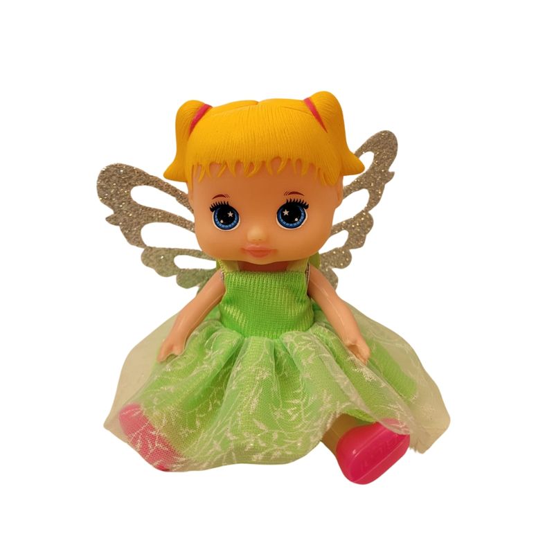 Boneca Lolinha Fadinha Verde - Anjo Toys Informações do Produto: Esta boneca é projetada para encantar as crianças com sua aparência mágica e acessórios divertidos, promovendo a criatividade e a imaginação durante a brincadeira. Itens inclusos: 1 boneca, 1 varinha. Dimensões aproximadas do produto: Mede aproximadamente 16cm. Recomendado: Não recomendado para menores de 3 anos de idade. Alimentação: Não necessita. Material composição: Polietileno, vinil, roupa em tecido. Certificação: CE-BRI/IQB 4115 NM 300/2002. Ocp 0006. Garantia do Fabricante: 03 meses contra defeitos de fabricação. Aviso: Todas as informações divulgadas são de responsabilidade exclusiva do fabricante/fornecedor. As cores dos tecidos ou dos produtos podem variar entre as imagens mostradas acima ou fotos da embalagem. Imagens meramente ilustrativas.