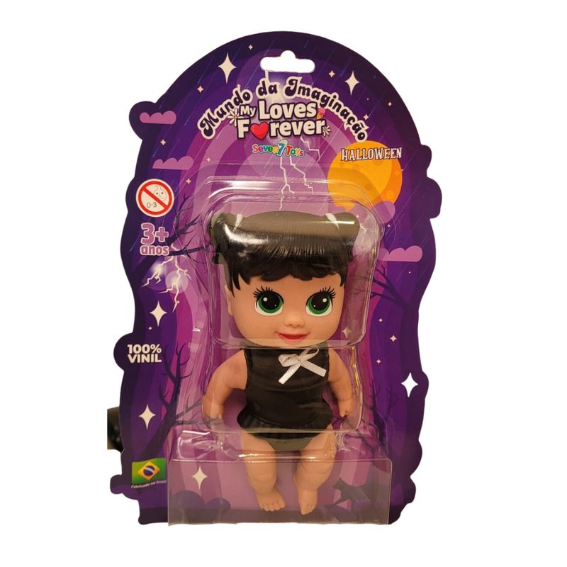 Boneca My Loves Forever Halloween - Seven Toys Informações do Produto: Brincar de boneca é uma das principais atividades para estimular a imaginação infantil. Modelo inspirado no halloween. Itens inclusos: 1 boneca. Dimensões aproximadas do produto: 17cm x 8,5cm. Recomendado: Não recomendado para menores de 3 anos de idade. Alimentação: Não necessita. Material composição: Vinil. Certificação: Registro compulsório inmetro 012852/2022. Ocp 0154. Garantia do Fabricante: 03 meses contra defeitos de fabricação. Aviso: Todas as informações divulgadas são de responsabilidade exclusiva do fabricante/fornecedor. As cores dos tecidos ou dos produtos podem variar entre as imagens mostradas acima ou fotos da embalagem. Imagens meramente ilustrativas.