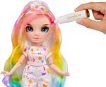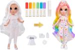 COLOR IT: Vestido todo branco com cabelo branco, blusa branca bônus, tênis branco e elástico para você colorir com marcador lavável arco-íris; Com marcadores vermelhos, laranja, amarelos, verdes, azuis e roxos você pode criar sua própria boneca Rainbow High