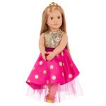 Faça uma viagem mágica com a boneca Sarah de 46cm da Our Generation! Ela tem olhos castanhos quentes que abrem e fecham, e seu longo cabelo loiro é muito divertido de pentear e pentear! Sua roupa apresenta um vestido dourado e fúcsia com uma base de tule, e sua coroa dá os toques finais no estilo encantado! Sarah também tem um corpo macio com braços e pernas de plástico que giram, e sua roupa pode ser misturada e combinada com outros conjuntos de roupas de Our Generation (vendidos separadamente), para que ela possa continuar brilhando onde quer que vá! Our Generation não se trata apenas de uma boneca, um lindo conjunto de roupas ou mesmo um kit de acessórios fantásticos. É sobre incentivar crianças de todos os estilos e gostos a criar suas próprias histórias, desenvolvendo um universo ilimitado de brincadeiras com bonecas e acessórios. Sua embalagem é feita de material reciclado, especialmente desenvolvida para uma geração mais ecológica que não aceitaria nada menos. Essa é a nossa história, e essa é a nossa turma!