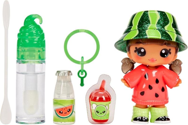 -A Yummiland Lipgloss Doll é muito mais do que uma simples boneca. -Ela combina diversão e estilo, permitindo que as crianças se divirtam enquanto expressam a sua criatividade. -Esta boneca não só oferece horas de entretenimento, como também inclui um lipgloss que as crianças podem usar e colecionar, tornando cada brincadeira ainda mais especial. -Cada boneca Yummiland vem com tudo o que você precisa para fazer seu próprio gloss labial, além de modas personalizáveis. -Basta despejar o líquido perfumado ("garrafa de refrigerante") e o líquido colorido ("bebida boba") no tubo de gloss labial, misturar com a colher de mexer incluída, selar o gloss labial e agitar para revelar seu novo gloss labial personalizado! -Com 6 bonecas diferentes, você pode criar mais de 50 combinações de gloss. (CADA BONECA VENDIDA SEPARADAMENTE) Características: Marca - MGA Série - Yummiland Tamanho da boneca - 10 cm Conteúdo - 1 Boneca com roupa de boneca removível e sapatos de boneca removíveis, além de um kit completo de gloss labial DIY ? 1 gloss labial transparente com brilho + 1 líquido perfumado + 1 líquido colorido + colher para mexer e chaveiro.