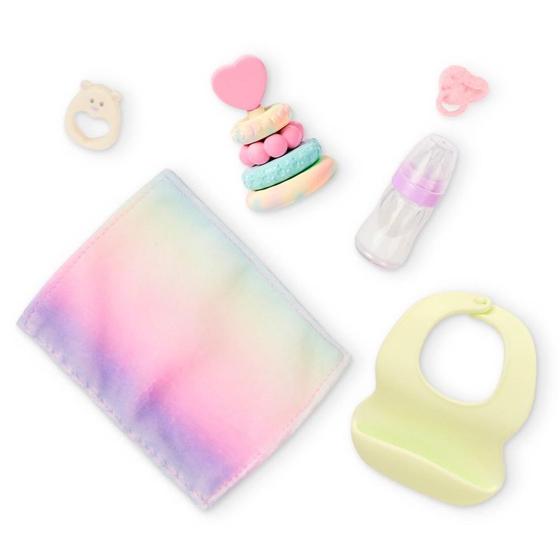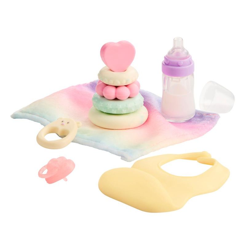 O kit inclui acessórios essenciais para o cuidado da bebê, como mamadeira, chupeta, babador, mordedor em forma de argolas coloridas e um cobertor super macio em tons degradê. Cada detalhe foi pensado para estimular a imaginação e o brincar de faz de conta, promovendo empatia, responsabilidade e afeto nas crianças. Com Tory e Riley, cada momento se transforma em uma nova aventura de cuidado e diversão!