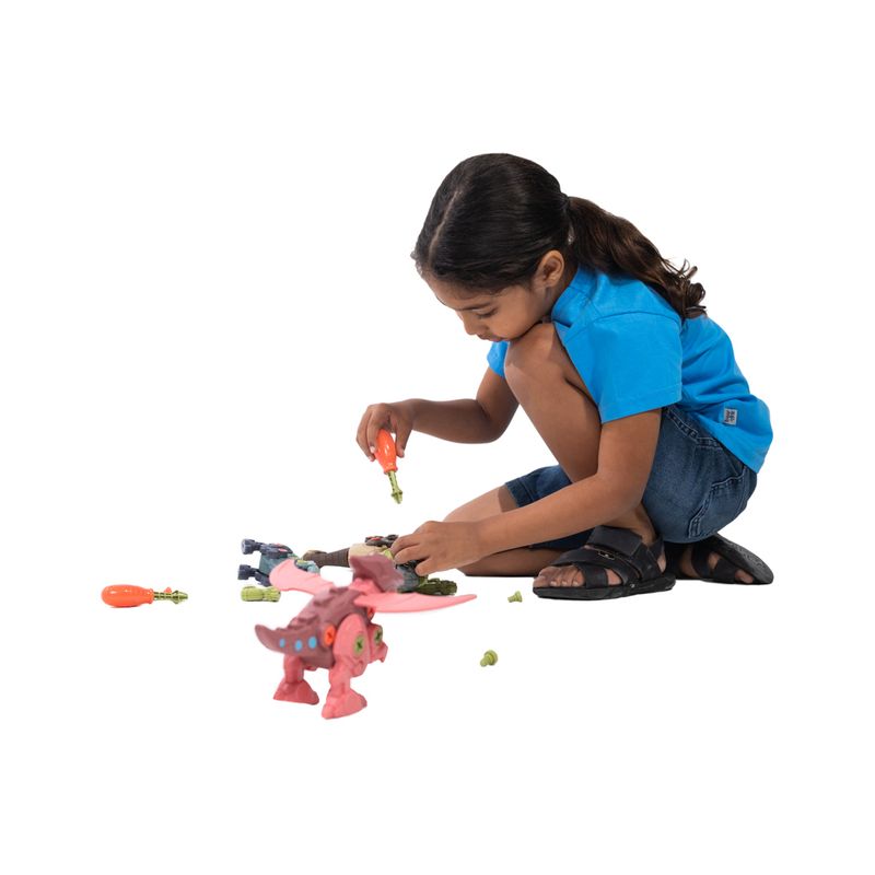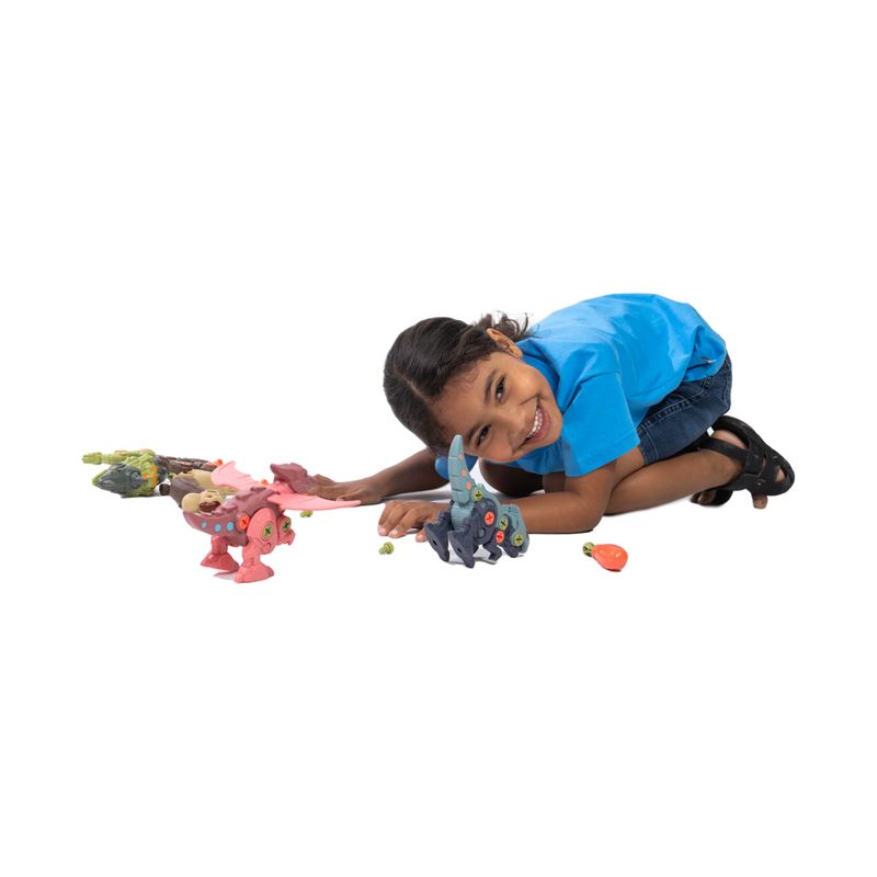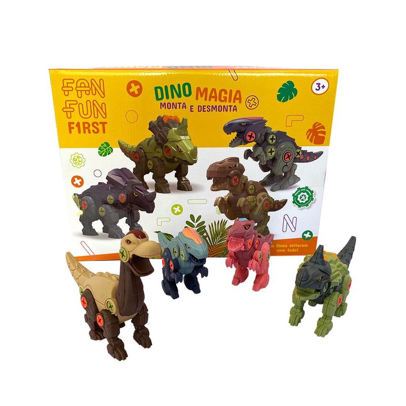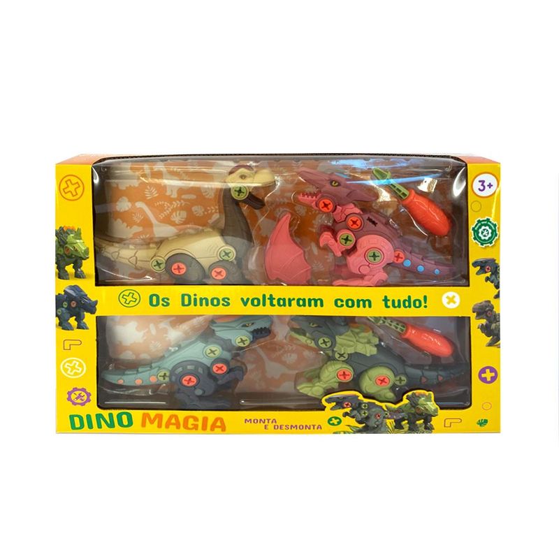 O brinquedo contempla 4 figuras de dinossauros montáveis, com 4 cores diferentes (verde, azul, vermelho e bege)! Perfeito para aquelas crianças que adoram brincar de montar! Além disso, as figuras de dinossauro fazem muito sucesso entre a criançada, então, combinada com a brincadeira montar, com certeza irá divertir demais todo mundo que quiser participar da brincadeira!