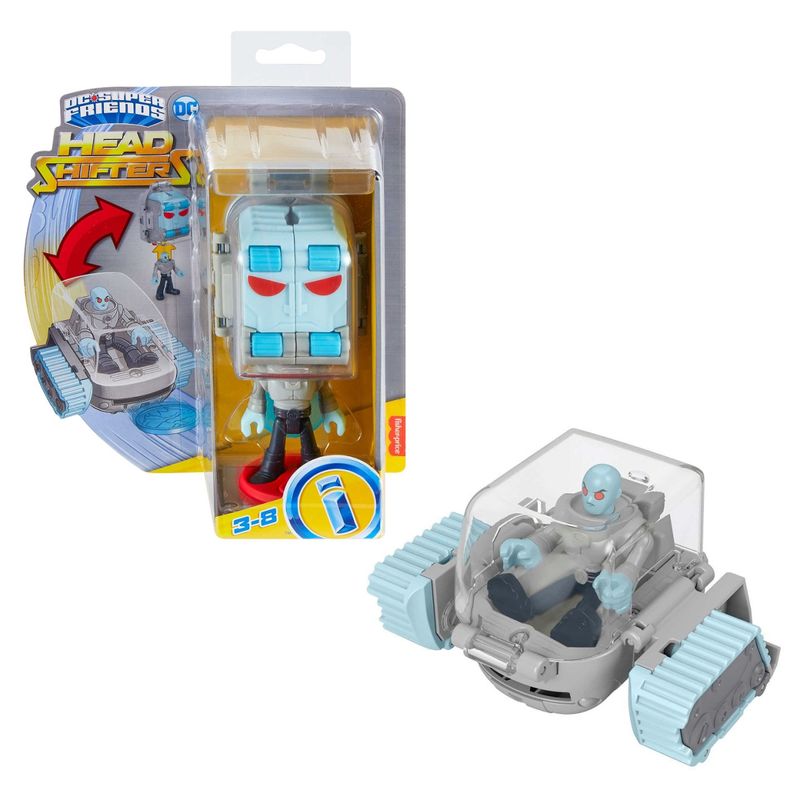 Os jovens combatentes do crime podem embarcar em emocionantes aventuras em Gotham City™ com os conjuntos de figuras e veículos Imaginext® DC Super Friends™ Head Shifters™ da Fisher-Price®. Cada brinquedo Head Shifters™ vem como um capacete enorme e imponente, flexível e pronto para exibição. As crianças podem remover o capacete, transformar o brinquedo em um veículo com rodas e preparar seus personagens para a ação. A coleção Imaginext® Head Shifters™ possui diferentes personagens DC Super Friends™, incluindo Batman™, Joker™ e Flash™. (Cada um vendido separadamente e sujeito à disponibilidade.)