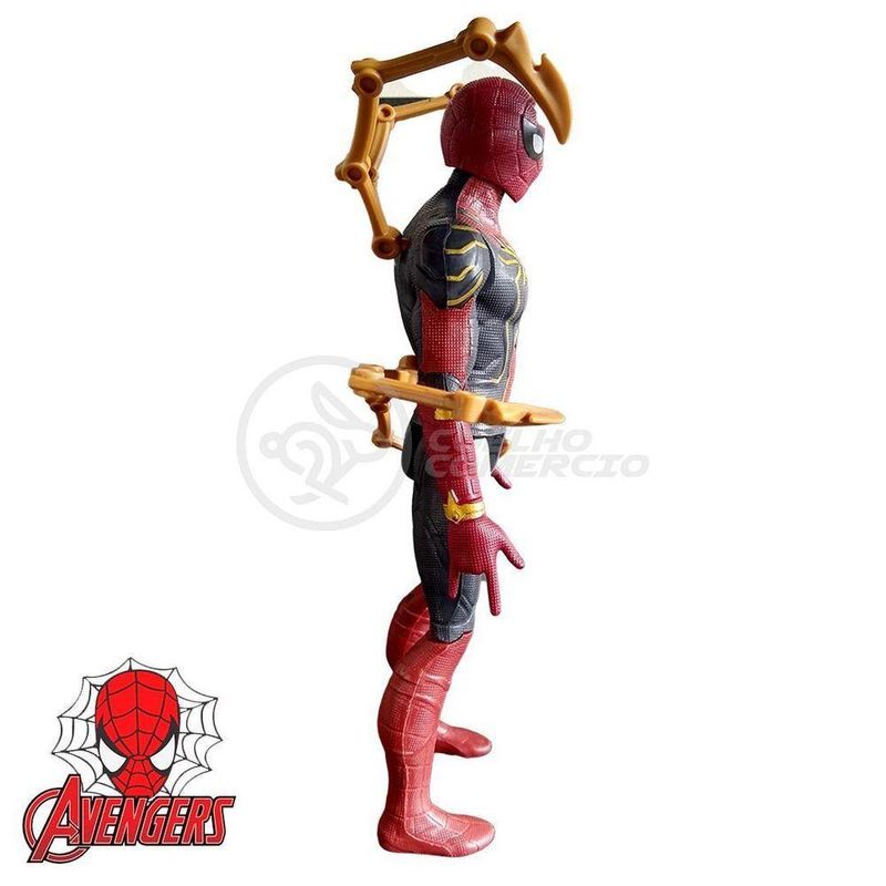 Conteudo: 1 Action Figure Homem aranha traje Aranha de Ferro 29cm + 4 Garras (Boneco possui musica)INMETROCertificador: BRICSNº Certificado: 7482/2022-BRI-1