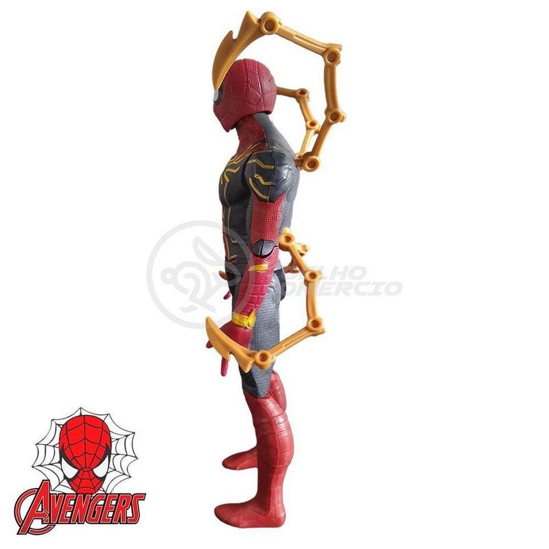 Conteudo: 1 Action Figure Homem aranha traje Aranha de Ferro 29cm + 4 Garras (Boneco possui musica)