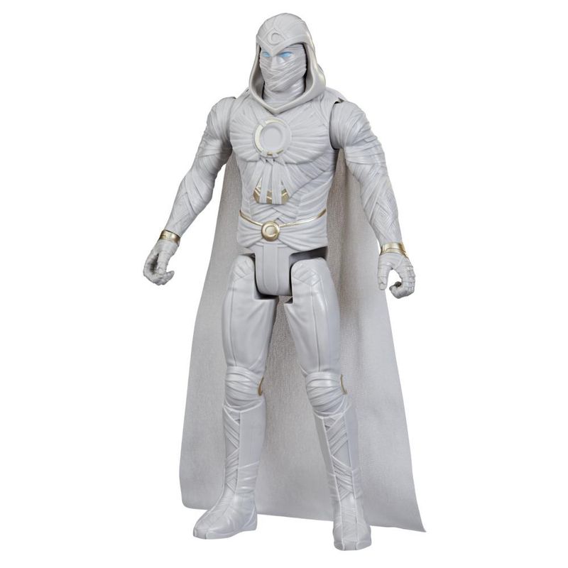 Marc Spector é mais conhecido como o super-herói Cavaleiro da Lua. Após receber poderes do deus egípcio Khonshu, o Cavaleiro da Lua leva justiça e vingança por onde passa Toda emoção do Universo Marvel com as figuras Titan Hero Series! Crianças a partir de 4 anos podem imaginar um universo de super-heróis com estas figuras de 30 cm da Marvel, inspiradas na série de Disney Plus. Apresentando design e detalhes inspirados na série, bem como vários pontos de articulação para mais diversão, meninos e meninas vão adorar imaginar aventuras em tamanho titânico!