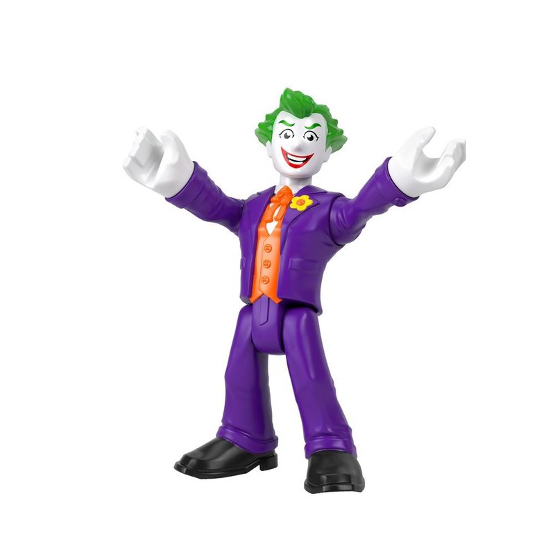 Jovens fãs de Batman podem levar suas batalhas de super-heróis contra super-vilões a alturas épicas com esta figura imaginável Imaginext DC Super Friends The Coringa XL da Fisher-Price. Com 10 polegadas de altura e com pescoço, ombros, pernas e pulsos totalmente móveis, este brinquedo extragrande The Joker permite que as crianças encenem suas próprias aventuras de vilão em Gotham City e além!