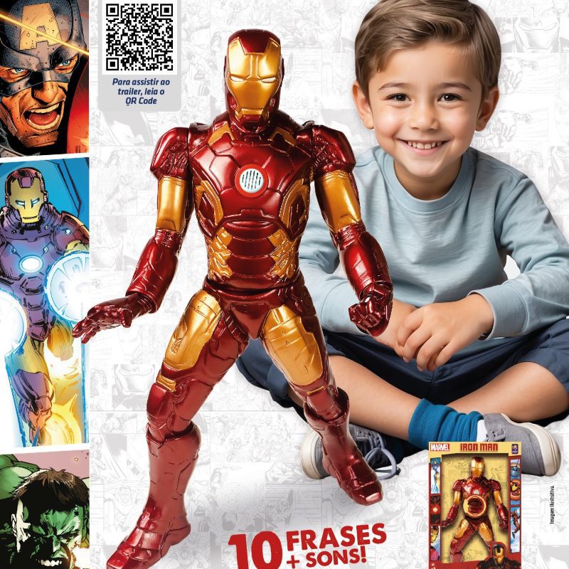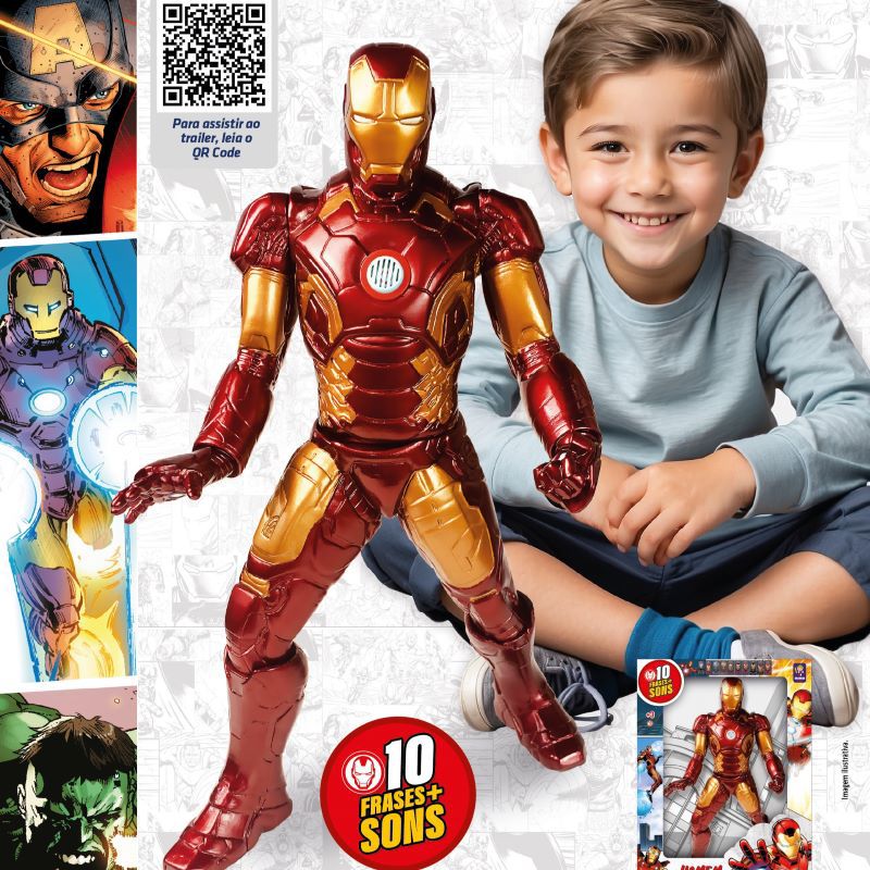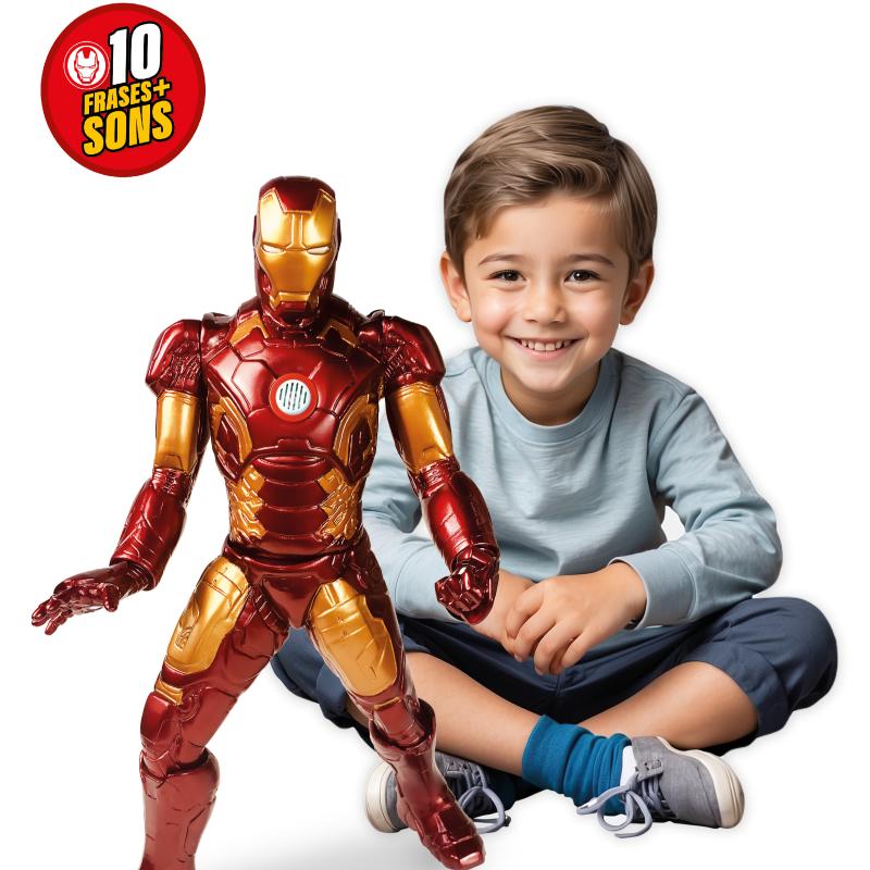 O Vingador mais tecnológico da Marvel ganha vida nesta versão incrível da Mimo. Este boneco articulado do Homem de Ferro não é apenas uma figura de ação, mas uma experiência completa: ele vem equipado com um dispositivo que reproduz 10 falas e sons de batalha originais, ativando a imaginação das crianças e o orgulho dos colecionadores. Com acabamento premium e articulações reforçadas, ele está pronto para voar direto para a sua coleção!