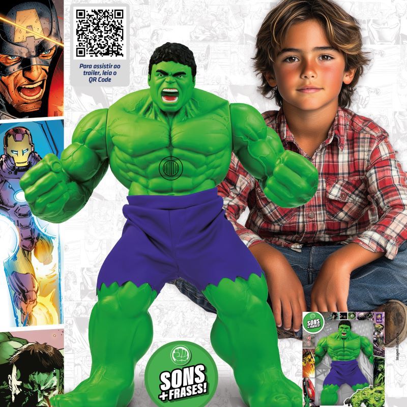 Leve para casa o gigante esmeralda em sua versão mais impressionante. O Boneco Hulk da coleção Marvel Universe, fabricado pela Mimo, possui articulações que permitem criar diversas poses de batalha. O grande destaque fica para os efeitos sonoros, que reproduzem os rugidos e frases icônicas do herói, tornando a brincadeira muito mais realista. Ideal para crianças e colecionadores que buscam detalhes e qualidade.