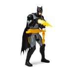 Figura de 12” Batman com luzes, sons e cinto de ferramentas rotativo. Troque os acessórios do cinto rapidamente enquanto estiver em combate pressionando a perna. Inclui 3 acessórios: Garra de Morcego, Tocha e Bat Blaster.