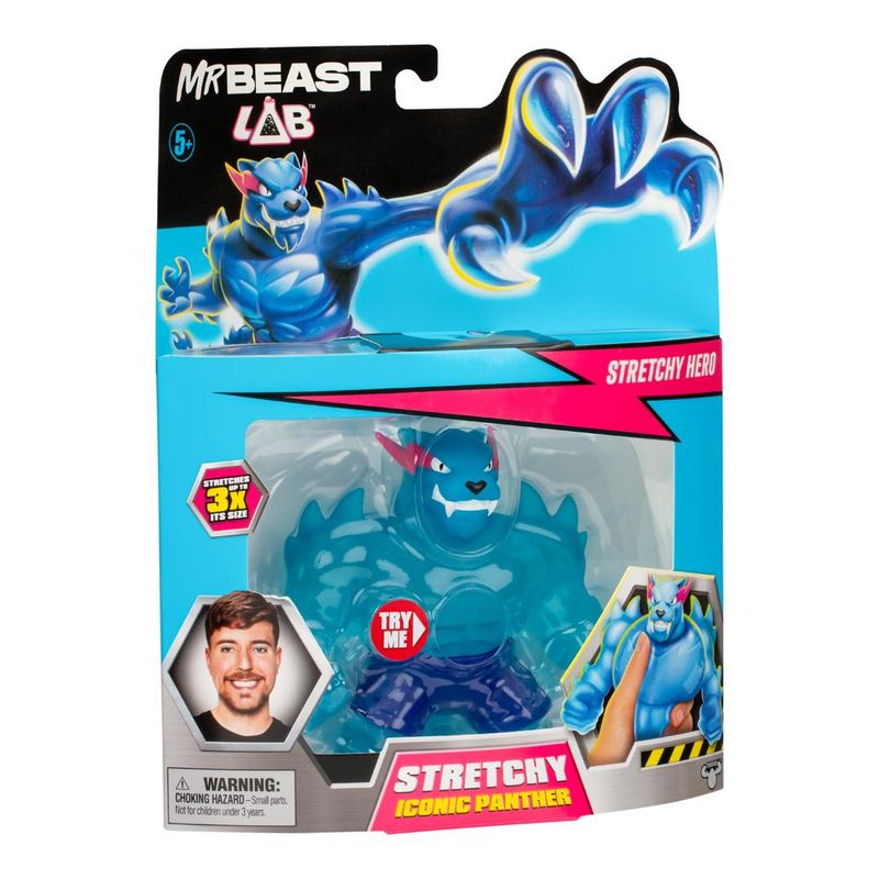 Apresentamos o novo MrBeast Lab - Heróis Esticáveis. A icônica pantera de MrBeast agora se transforma em um herói elástico e macio, nunca antes visto. Com aproximadamente 11 centímetros, essas figuras podem esticar até três vezes o seu tamanho, prontas para um ataque poderoso. São três heróis pantera elásticos únicos para colecionar, cada um com um recheio pegajoso diferente: a Pantera Icônica, a Pantera Hiper Carregada e a Pantera Lendária. Comece sua coleção e aventure-se com o novo MrBeast Lab - Heróis Esticáveis da Heroes of Goo Jit Zu. Adquira já e descubra a diversão elástica e surpreendente!