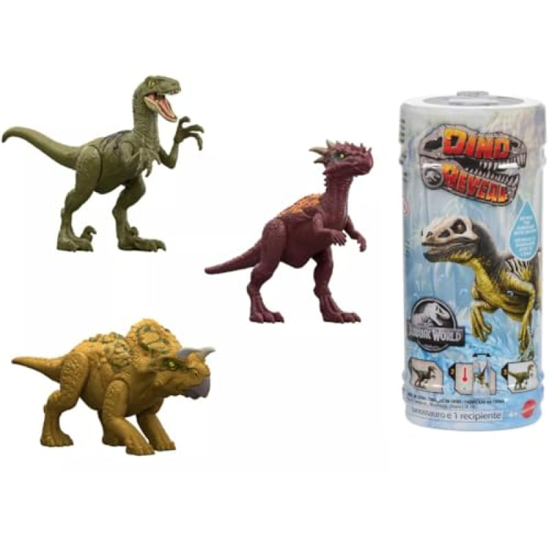 Esses brinquedos de dinossauro Jurassic World Dino Reveal oferecem uma surpresa ao desembalar e uma brincadeira de mudança de cor. Cada figura de dinossauro vem escondida dentro de um pacote estilo tubo inspirado em um recipiente de DNA de dinossauro. Descompacte-o para revelar a surpresa da espécie de dinossauro, qual dinossauro será? A figura revelada é um esqueleto de duas cores. Coloque a figura no recipiente tubular e adicione água morna suficiente para cobri-la. Gire na água para uma revelação Dino da decoração colorida do dinossauro! Várias espécies estão disponíveis; cada figura é vendida separadamente e sujeita a disponibilidade. As cores e decorações podem variar.