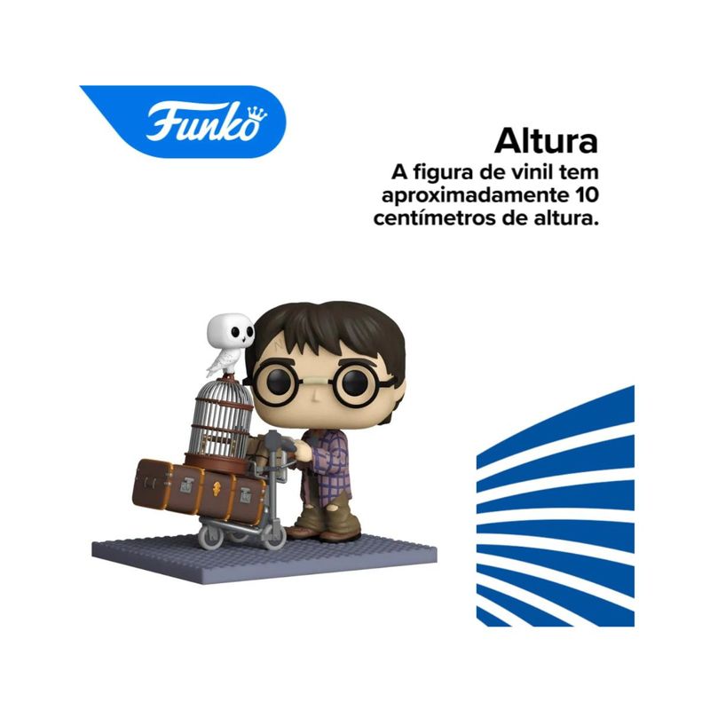 Harry Potter está com sua bagagem no carrinho, mas parece um pouco perdido. Ajude-o a encontrar o caminho adicionando o Boneco Funko Pop! Deluxe Harry Potter Empurrando o Carrinho à sua coleção e ajude-o a embarcar na estação secreta para Hogwarts.