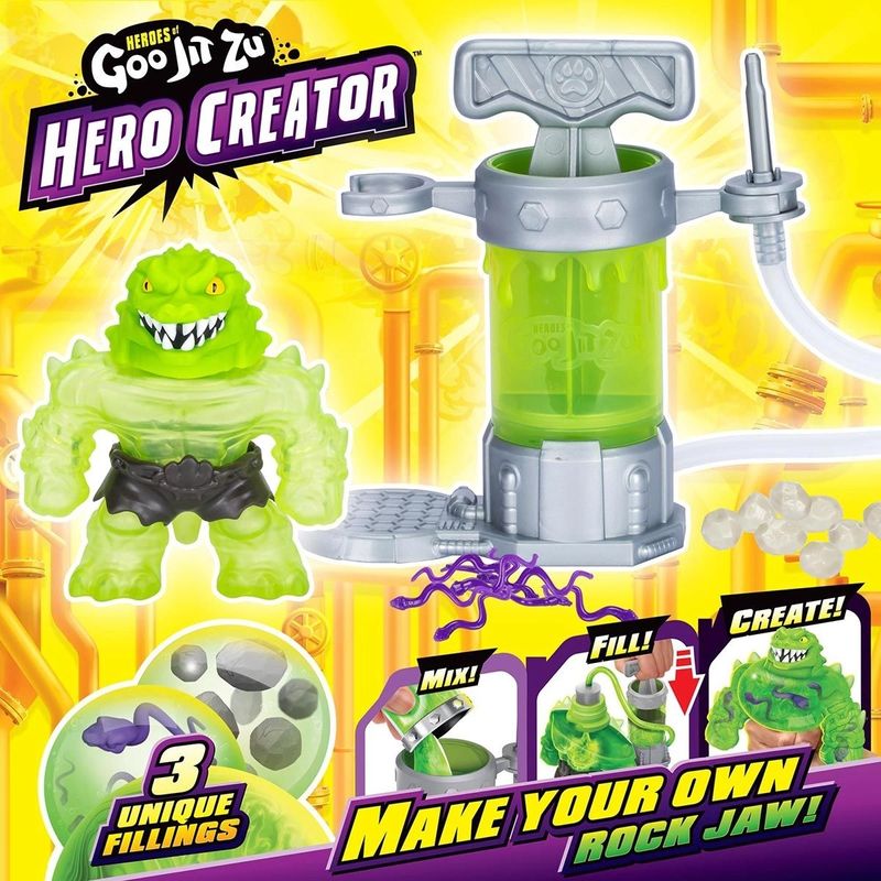 Prepare-se para uma experiência cheia de ação, slime e criatividade com o Goo Jit Zu Hero Creator Rockjaw!