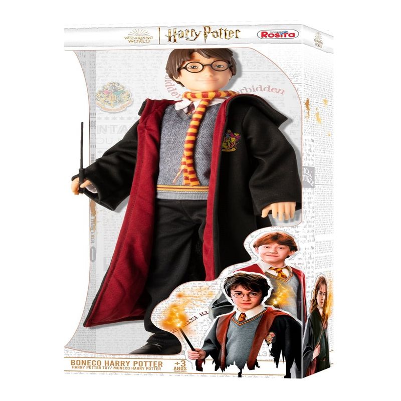 Boneco Harry Potter 45cm Novabrink, um lindo boneco caracterizado com roupas e acessórios iguais a do personagem, vem com capa, cachecol, óculos e uma varinha para a criançada se divertir com o bruxo mais famoso do universo e das telinhas.