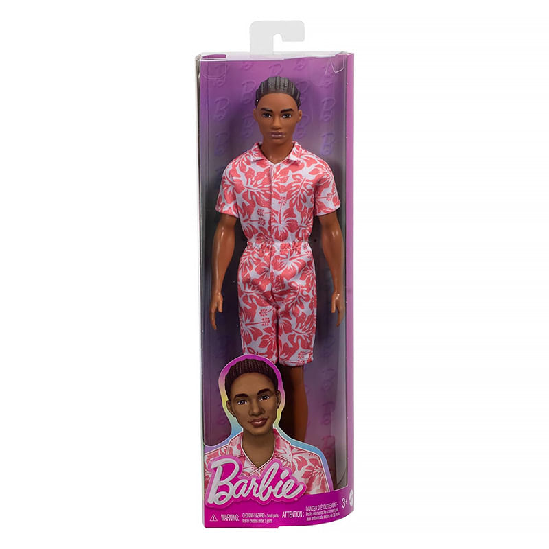 Boneco Ken Fashionista Negro com Macacão Coral Havaiana da Mattel.