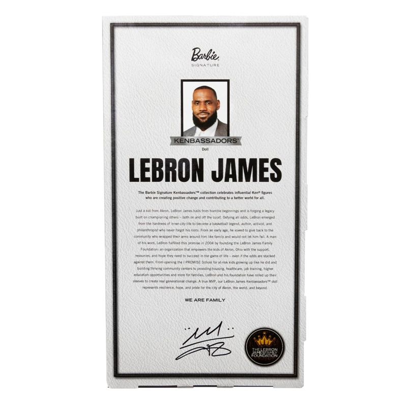 Temos o prazer de apresentar LeBron James como o primeiro boneco da nossa linha Kenbassadors. Ele é um verdadeiro líder — um ativista, filantropo e defensor dos outros, dentro e fora das quadras. Um agente de transformação e criador de tendências, este boneco Ken de LeBron James incorpora seu estilo streetwear sofisticado e característico, ao mesmo tempo em que representa com orgulho a Fundação da Família LeBron James, sua organização sem fins lucrativos dedicada a capacitar jovens de áreas urbanas com as ferramentas necessárias para o sucesso na vida.