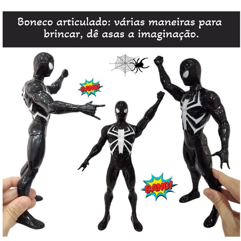 BONECOS E BONECASBONECOSBONECOS ARTICULADOSBoneco Marvel 22cm Homem Aranha Preto All Seasons