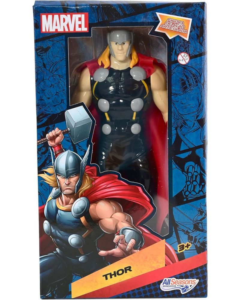 Este boneco articulado do Thor, da linha All Seasons, é uma figura de ação oficial da Marvel que combina diversão e criatividade, ideal para fãs de todas as idades. Com 22 cm de altura, ele é feito de plástico e vinil, garantindo suavidade e leveza, tornando-o fácil de manusear e perfeito para brincar.