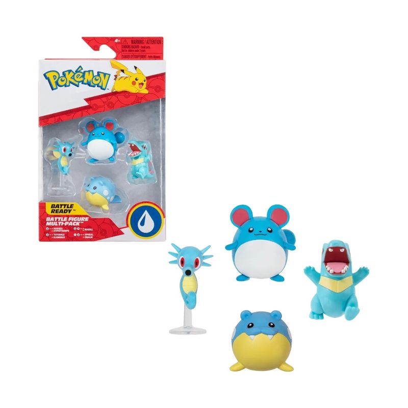 Pokémon Multipack Battle Figure Tipo Água com 4 Bonecos – Horsea, Marill, Totodile e Spheal. Leve para casa a diversão do mundo Pokémon com este incrível conjunto de figuras colecionáveis!