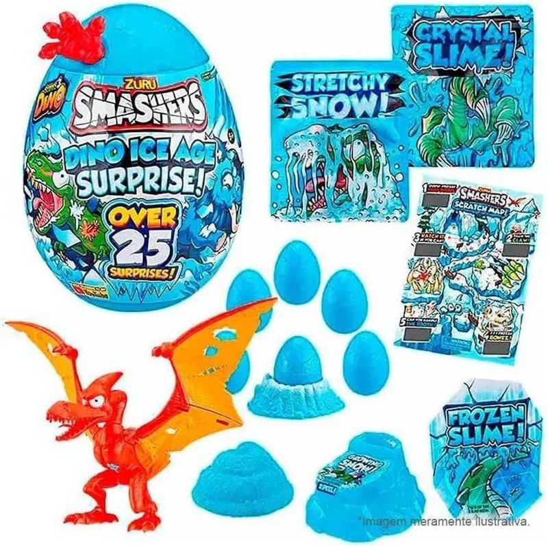 ATENÇÃO, PRODUTO SURPRESA, NÁO É POSSÍVEL ESCOLHER O MODELO -Prepare-se para uma brincadeira cheia de emoção com o Smasher Dino Ice Age Surpresa Grande da marca Fun Divirta-se. -Ao abrir este ovo, você encontrará 20 surpresas incríveis escondidas em neve, frozen slime, cristal slime e muito mais. -Monte seu próprio Smash-o-Saur escolhendo entre um Tiranossauro Rex, Pterodátilo ou Mamute. -Junte todas as peças e embarque em grandes batalhas! -As crianças a partir de 5 anos vão se encantar com este brinquedo que proporciona diversão e estimula a criatividade. Com um mini Smash-o-Saur, personagens surpresa, neve stretchy, cristal slime, mapa, guia de coleção e manual de instruções, a diversão é garantida. Características: Marca - Fun Cód. FUNF0063-1 Inclui: 1 Ovo Dino Ice Surpresa Grande, 6 Mini Smasher Ovo Pequeno, 1 Smash-o-Saur, 6 personagens surpresa, 1 ninho reconstrutor, 1 neve stretchy, 1 cristal slime, 1 blizzard bomb, 1 growing snow, 1 frozen slime, 1 mapa, 1 guia de coleção e 1 manual de instruções. Material: Plástico