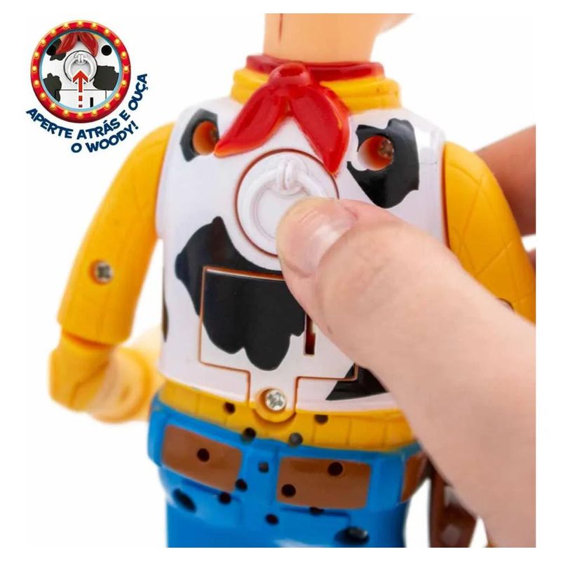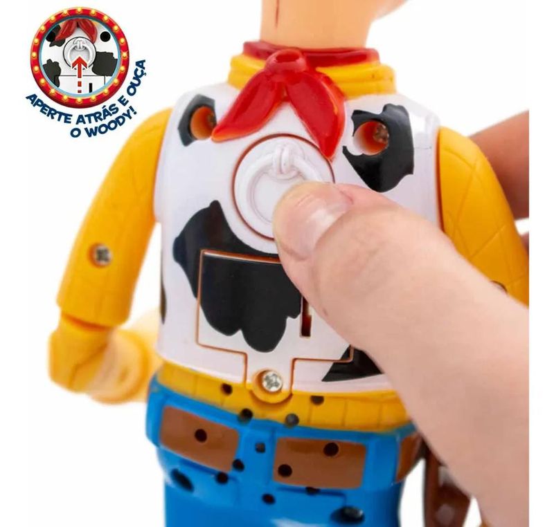-Direto do velho oeste e de Toy Story, vem o Xerife Woody como um boneco de ação interativo e frases. -O sensato xerife apresenta 14 frases clássicas do personagem e começa a falar quando apertam o botão em suas costas! -O Boneco Woody Toy Story da Toyng possui pontos de articulações inclui o chapéu para você recriar suas cenas favoritas. -Para a diversão ficar completa, pressione o botão nas costas do Woody que ele falará frases icônicas do filme. Características: Marca - Toyng Idade Mínima Recomenda: 4 ANOS Material: Plástico Tamanho: APX 27 Cm Conteúdo: 1 Boneco Woody Com Frases Cód. 051039