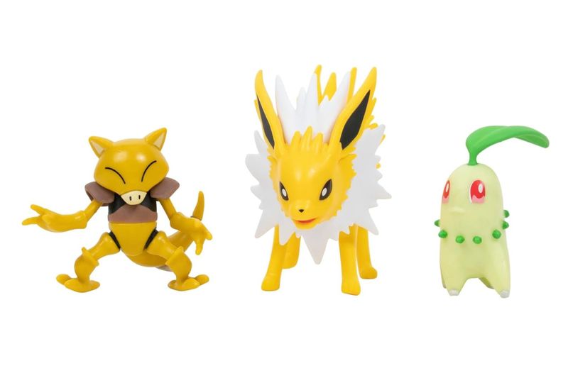 Bonecos Abra + Chikorita + Jolteon - Pokémon - Battle Figure Set - Jazwares