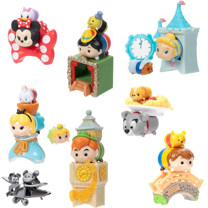 Este conjunto inclui 6 Tsum Tsums: Mickey, Minnie, Pluto, Pateta, Pato Donald e Margarida. Cada personagem vem em seu próprio cenário único, que pode ser empilhado para criar uma torre encantadora ou disposto de forma independente para momentos de pura imaginação.